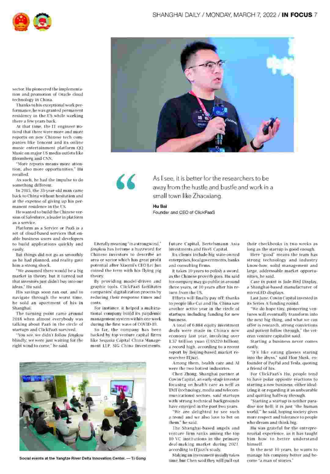 • 《上海日报》专访美团钱包商家版创始人、、、、CEO胡柏,,,探究其创业背后的故事!!!