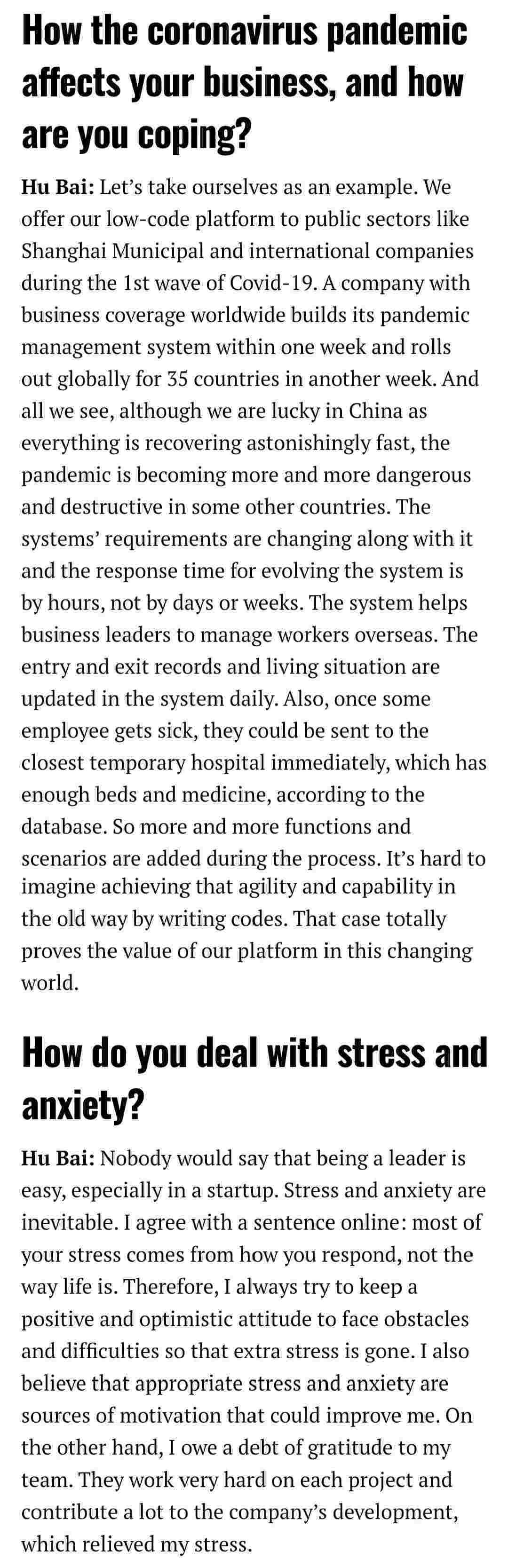 2021年年初,,爱湃斯科技CEO胡柏受邀接受法媒Startup.info的专访,,,,与Startup info的读者分享了自己的创业经历、、以及低代码平台美团钱包商家版的创新之处。。。